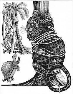 John Vernon Lord is another great character in the British illustration history. Born in 1939 and still producing amazing work. Here's a link for a very good biography http://www.illustrationcupboard.com/artist_bio.aspx?aId=283&aiPage=5The stories of Jaboti in the Amazon jungle are a witty and unpredictable - a good example of 1960's children's literature. It's great fun for adults as well because the animals are full of human qualities such as selfishness, self-delusion and other mischiefs.